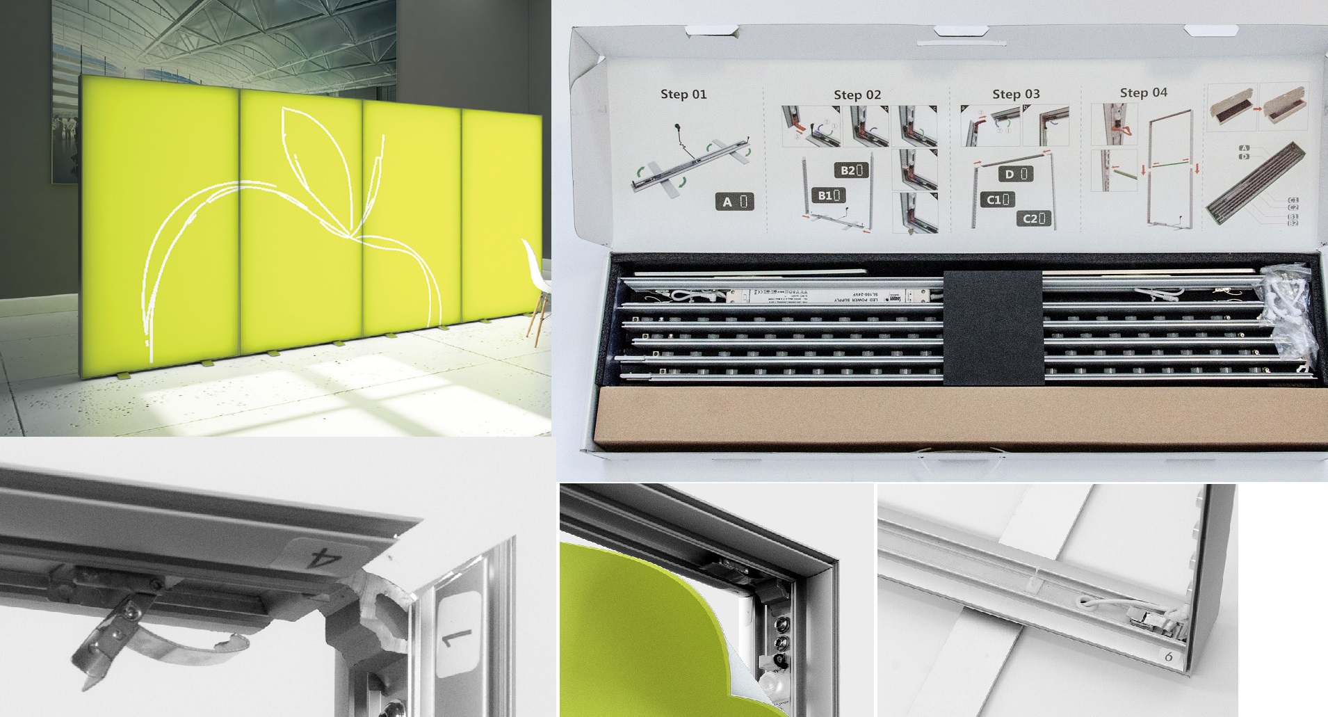 Modulair textiel stretchdoek c.q. peesdoek frame (8 cm diep) met ingebouwde LED-verlichting en full colour backlit B1 stretchdoek. Het lichtgewicht aluminium frame (15kg) klikt u zonder gereedschap in enkele minuten in elkaar en natuurlijk weer uit elkaar. Ideaal voor snelle presentaties en door het gewicht ook ideaal om mee te nemen. Compleet met stabiele voeten en direct aansluitklaar. Laat u presentatie stralen door een schitterende uitlichting van de full colour print. Dankzij de ingebouwde magneten in het frame kunt u meerdere lichtframes zonder gereedschap tot een grote wand koppelen. Plaats de modules eenvoudig tegen elkaar en het systeem klikt automatisch vast. Full colour print op stretchtextiel met B1 brandvertragende eigenschap en inclusief confectie met gummi lip of pees. Voor de print dient u een drukklaar bestand aan te leveren. Drukbestand kunnen wij ook voor u opmaken. Bij aanleveren van het drukbestand controleren wij deze uitvoerig en voor wij gaan printen ontvangt u een printproef die u moet goedkeuren. Optie: stevige draagtas met wieltjes en losse prints voor als u een keer wilt wisselen (zie onder). Zie voor meer info bijgevoegde afbeeldingen en de video. Zie voor opmaak printbestand bijgevoegde PDF.Wilt u een prijs aanvragen?