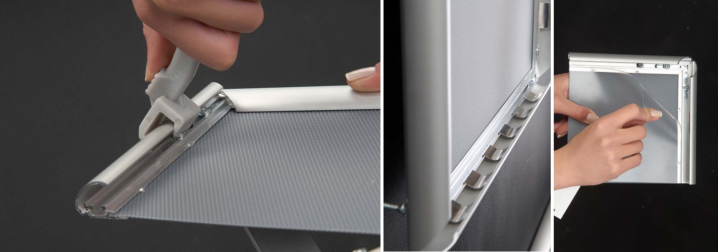 Safety omdat als de kliklijst dichtgeklapt wordt deze alleen nog te openen is met een speciale opener. De wissellijst is uitgevoerd met een 25 mm aluminium klemprofiel. Wordt geleverd met een ontspiegelend PET folie en voor de bevestiging op de wand schroeven en pluggen. Opener apart bestellen.Wilt u een prijs aanvragen?